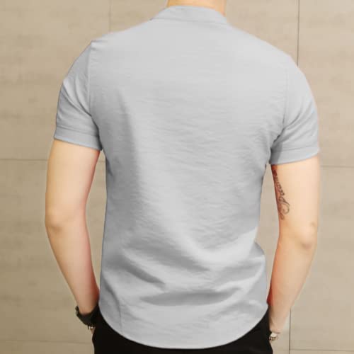 Camicie da Uomo a Maniche Corte in Tinta Unita Moda Cinese con Bottone a Disco Slim Fit Camicia Casual con Colletto alla Coreana 4XL