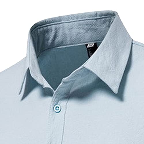 Camicie da uomo a maniche lunghe slim fit, casual tinta unita, maniche lunghe, mezza coperta con bottoni rovesciati, collo in flanella da uomo, vestibilità regolare, stile casual, blu cielo, 4XL