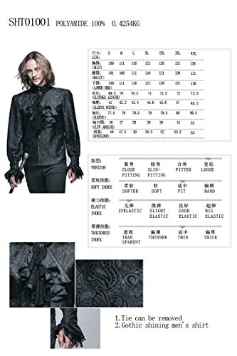 Camicie Steampunk Medievale Uomo, Gothic Shirt Uomo Manica Lunga Bianca Nero