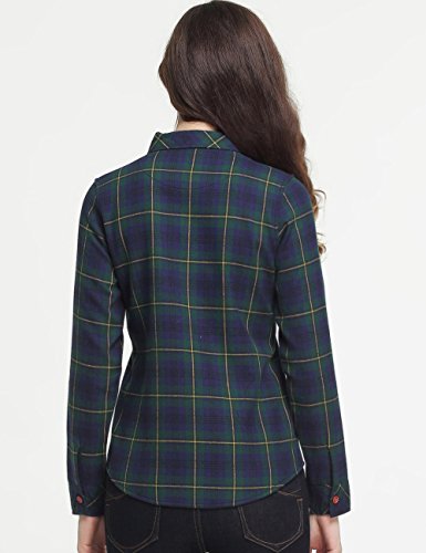 Camii Mia Donna Camicia Blusa Button Down Manica Lunga Stile Lana Stampato a Quadri