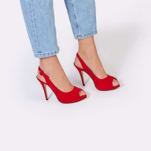 Camila - Sandali Eleganti da Donna in Pelle Rosso - Peep Toe Peep Toe - Tacco Alto a Spillo 10 cm - Plateau 1 cm - Eleganti Scarpe da Festa d'Estate - Rosso - Rosso 41 EU