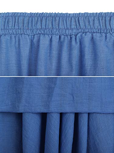 Camilife Gonna Lunga da Donna in Cotone con Doppia Strati Vita Elasticizzata maxigonna Tinta Unita Blu Reale