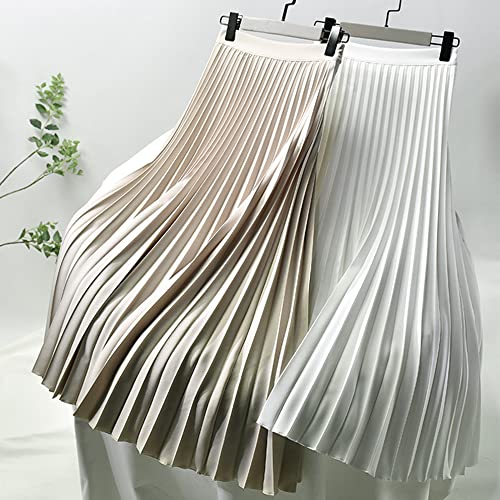 Camilife Gonna a Pieghe da Donne Ragazze Gonna Lunga Maxi Gonna a Vita Alta A-Line Gonna Plissettata Cintura Elastico in Vita con Cerniera Laterale Lunghezza Gonna 90cm - Beige Tinta Unita