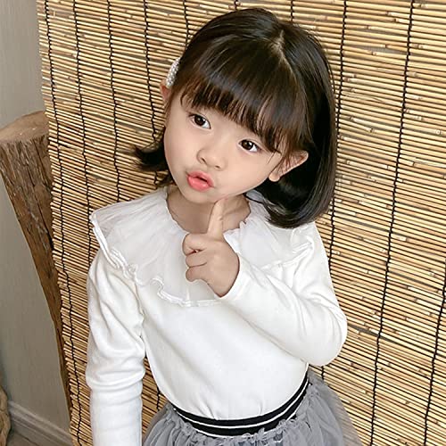 Camilife Maglietta a Maniche Lunghe da Bambina 100% Cotone con Colletto a Balze Morbida Tinta Unita Beige Taglia del Produttore 110