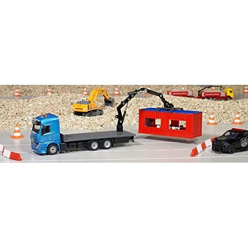 Siku 3556, Camion con container per cantiere, 1:50, Metallo e Plastica, Blu e Rosso, Con gru per spostare il container