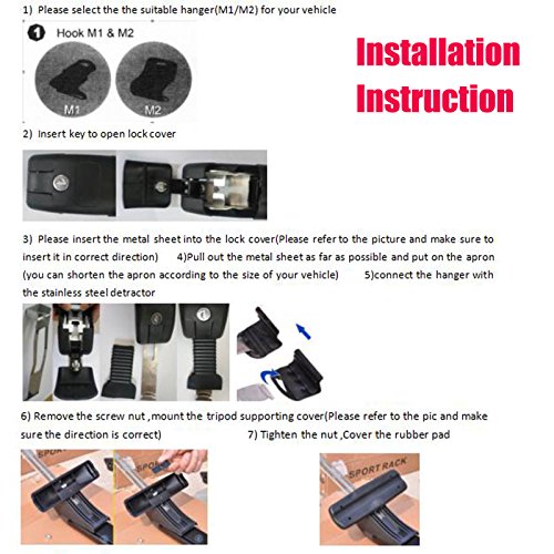 1. Montaggio: progettato per auto che non hanno sollevato railing già montato. Adatto solo per auto 4 o 5 porte (non adatto per automobili, furgoni o grande 4 X 4S) 3 porte.