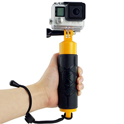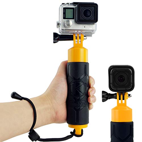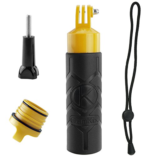 CamKix Galleggiante Premium Compatible con GoPro Hero / DJI Osmo Action - Impugnatura Galleggiante per GoPro Hero 4, 3+, 3, 2, 1 / Interno vuoto per conservare piccoli oggetti / Manico con rivestimento in silicone texturizzato per una facile presa / Vite a galletto e Cordino inclusi (Giallo)