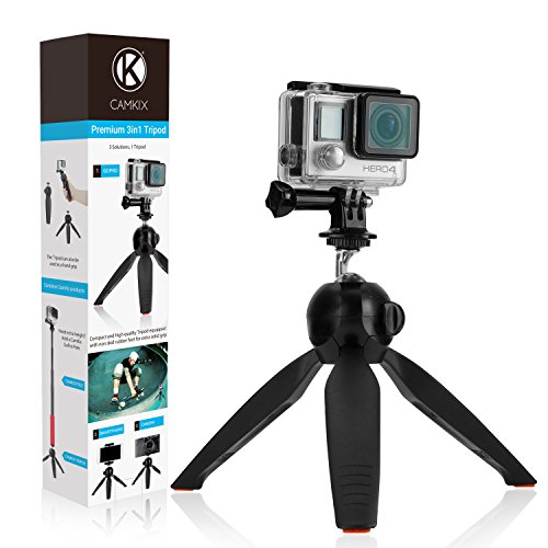 CamKix Base Treppiede Premium 3in1 e Impugnatura Stabilizzatrice Compatta - Compatibile con TUtti i Modelli di GoPro Hero, DJI Osmo Action, Fotocamere Compatte e Smartphones - Supporto a Sfera Forte e Stabile e Sistema di Bloccaggio non Piedini Anti Scivolo - Include un Supporto GoPro, Porta Cellulare e Vite - Accessori Action di Qualità CamKix