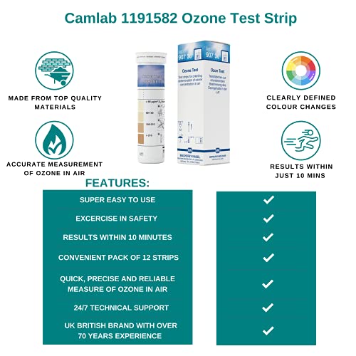 Camlab 1191582 - Strisce di prova per ozono, da bianco a marrone, confezione da 12