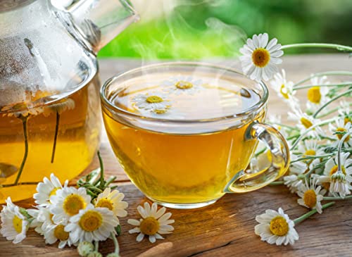 Fiori di camomilla: la camomilla è da sempre conosciuta per il suo sapore dolce e floreale, ma anche per gli effetti calmanti. É ottima per chi soffre di stress, blocco digestivo o disturbi del sonno.