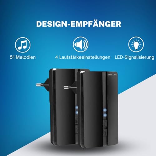 Campagnelli Wireless - Bell4U - Campagnelli Nero Portatile Esterno - 51 Suonerie - Indicatori LED - 50M Operativo a grande Distanza - 4 Volumi Selezionabili - 2x Trasmettitore e 2x Ricevitore