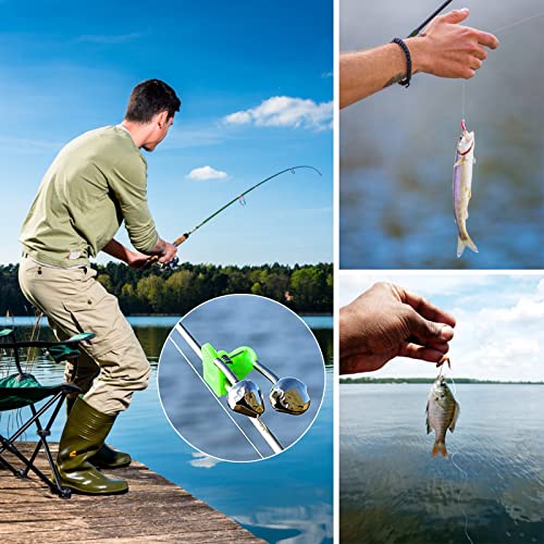 【Facile da usare】 La clip verde ha due tacche per trattenere la canna. Basta attaccare la campana alla tua canna da pesca e suonerà quando il pesce colpisce. Fai attenzione al vento, sono delicati quindi tremeranno con il vento, ma puoi facilmente capire la differenza tra il vento e il pesce che rosicchia.