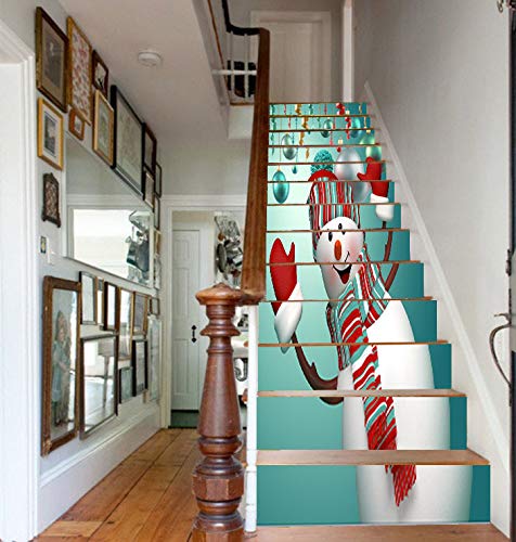 3D Campane Di Natale Pupazzo di neve Autoadesiva Le scale alzata Murale Vinile decalcomania Adesivi per scale decorazione per Natale Feste 39,3 pollici x7,08 pollici x 13 pezzi