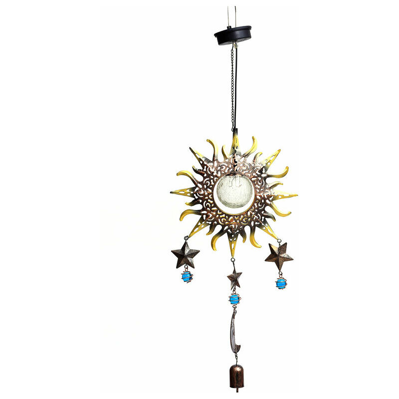 Caratteristiche: lampada a sospensione ad energia solare, stile unico, bella decorazione per cortile, giardino, alberi, balcone, festival e recinzione per feste. Progettato con una campana del vento, suonerà piacevolmente con la calda luce bianca, creando un'atmosfera confortevole e morbida. Facile da installare, basta appenderlo all'esterno dove può essere esposto alla luce solare durante il giorno. Design impermeabile, può essere utilizzato all'aperto, indipendentemente dal sole o dalla pioggia, dalla neve. Ricarica automatica alla luce del sole, può illuminare fino a 8 ore quando è completamente carica. Specifiche: Pannello solare: policristallino 2V 80MA Batteria: 1*1.2V AA 600MAH NI-MH Lunghezza di sospensione: 80cm Modalità di lavoro: rilevamento ottico LED: 1 LED bianco super luminoso Voltaggio: 1.2V Potenza nominale: 0, 06 W Tempo di illuminazione diurna: 8-10h Durata della vita: 100000h Tasso impermeabile: IP55 Materiale: ferro, plastica Colore: multicolore Peso: 630g