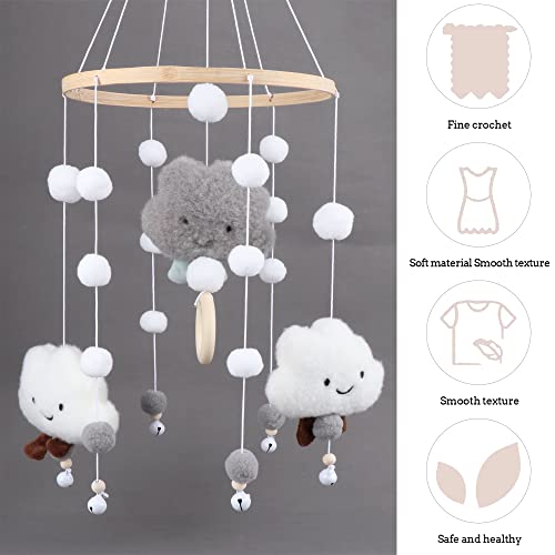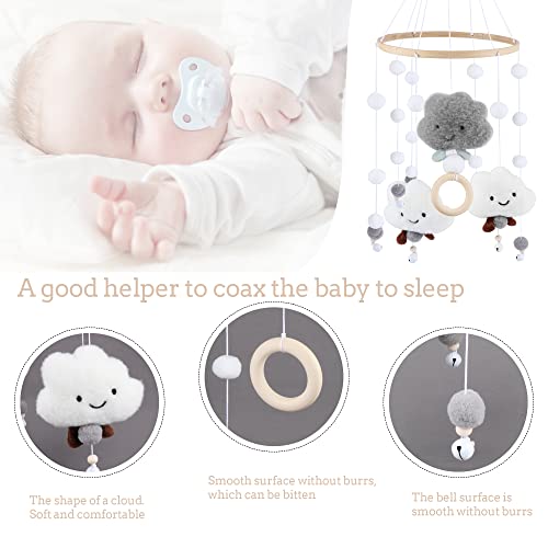 【Design unico e minimalista】 Campanello per lettino con palline di feltro nuvole 3D. Le palline di feltro sono di alta qualità e non si annodano tra le palline. Allo stesso tempo, i colori vivaci possono stimolare visivamente il bambino e suscitare la curiosità del bambino, sviluppare la capacità visiva del bambino di giudicare il colore.