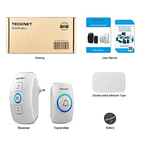 Campanelli Wireless,TECKNET Campanello Senza Fili Portatile Wireless Doorbell, Indicatori LED, 250M Operativo a grande Distanza, 4 Volumi Selezionabili, Italia Spina (1xTrasmettitore e 1x Ricevitore)