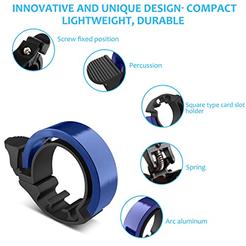 Campanello Bicicletta Campanello Bici di Alluminio Corno, Campanello Bici Corsa, O Design, 90-100db, Impermeabili, Campanelli per Bicicletta da Strada, MTB, Adatto a Manubri 22,2-31,8 mm, Blu
