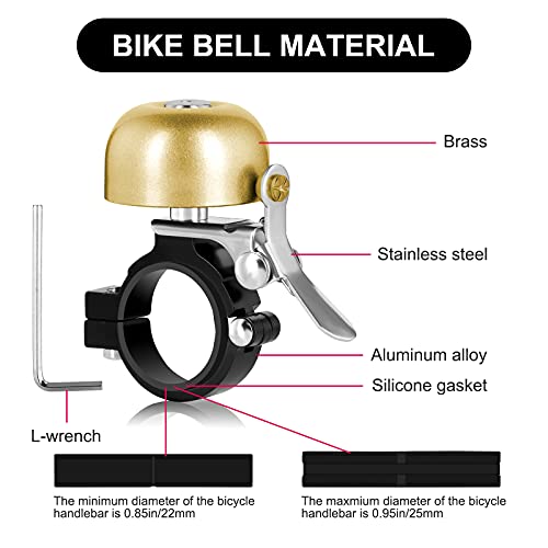 Campanello per bicicletta, classico campanello per bici in ottone con suono forte e nitido, trombe per bici per bambini e adulti, accessori per ciclismo per la maggior parte delle biciclette(dorati)