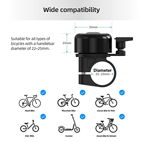 Per tutti i tipi di biciclette: Il campanello bicicletta è adatto a tutte le biciclette con un diametro del manubrio da 22 mm a 25 mm. è compatibile per mountain bike, bici da corsa, city bike, bici per bambini, e-bike, scooter elettrico.