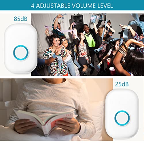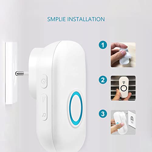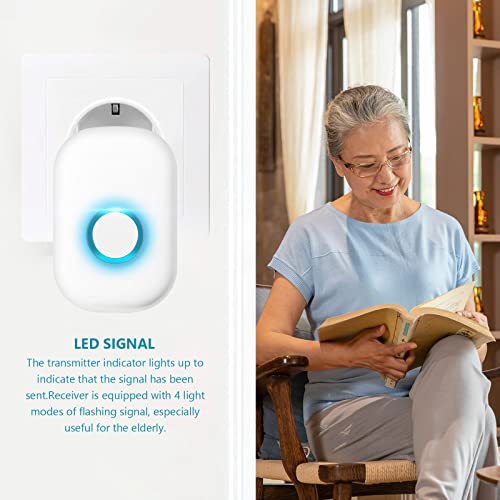 【LED lampeggiante】campanello wireless la vita campanello viene prolungata del 50% con una fonte di tensione costante. Le suonerie (trasmettitori e ricevitori) hanno indicatori led, quindi, se qualcuno suona, ogni dispositivo lampeggia in blu. Un design facile da usare per gli anziani non udenti o per i disabili.