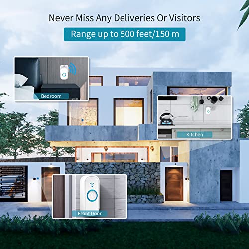 Campanello Senza Fili, Campanello Senza Fili da Esterno,Portata 300m,Impermeabile IP44,58 Melodie con 4 Livelli di Volume,Indicatore LED,1 Trasmettitore Pulsante e 1 Ricevitore