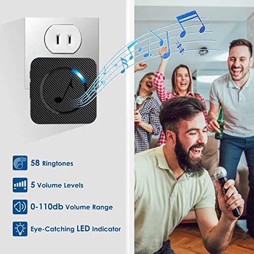 Campanello Senza Fili, Campanello Senza Fili da Esterno, Portata 300m, 58 Melodie con 5 Livelli di Volume, Indicatore LED, 1 Trasmettitore e 2 Ricevitori, Campanello Wireless per Casa,Negozio, Ufficio