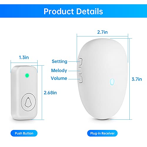 Campanello Senza Fili, Gamma Portata 300m 57 Melodie Campanello Wireless con 4 Livelli di Volume e Modalità Mute,Campanello Impermeabile IP55 Campanello da Esterno e LED Colorato Lampeggiante
