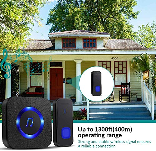 Portata wireless 300 M / 1000 piedi - Il raggio d'azione lungo è fino a 300 M / 1000 piedi, il segnale wireless forte e stabile assicura che tu possa sentire chiaramente il suono del campanello, anche se sei a poche stanze di distanza o su un altro piano