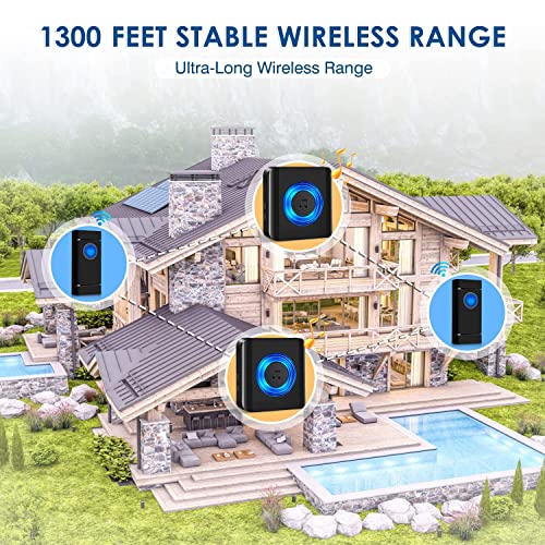 Campanello senza fili Satisure, campanello senza fili impermeabile IP55, 58 Melodie con 5 Livelli di Volume, Portata 400m, 2 Trasmettitore e 2 Ricevitore