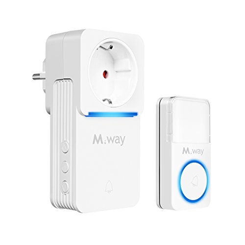 M.Way Campanello Senza Fili con Spina, Impermeabile, con Sticker 52 Melodie, 5 Livelli di Volume, Indicatore LED, Gamma di 1000 Piedi per Ufficio, Hotel, Casa e Altro (1 Ricevitore e 1 Trasmettitore)