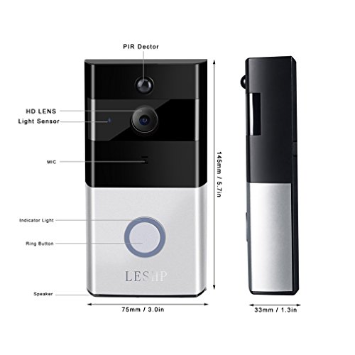 Campanello Video Senza Fili,Leshp Campanello Video HD 1080P - Audio Bidirezionale Compatibile Wi-Fi - Sensore di - Visione Notturna - Doorbell Collegamento - Batteria Rimovibile