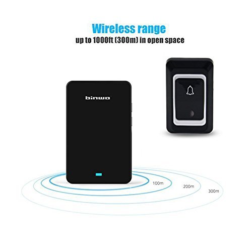 Campanello Wireless Campanello, Binwo Funk campanello aussenbereich impermeabile con raggio d' azione fino a 300 m, Campanello Wireless con 2 & 1 trasmettitore, casa giardino campanello senza fili - Campanello senza fili set con 4 Livelli di Volume e indicatore LED (nero), 220.00 voltsV