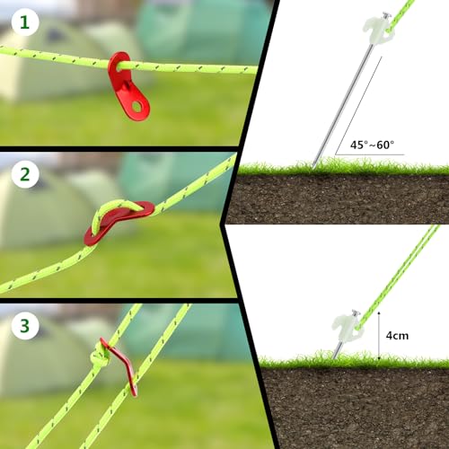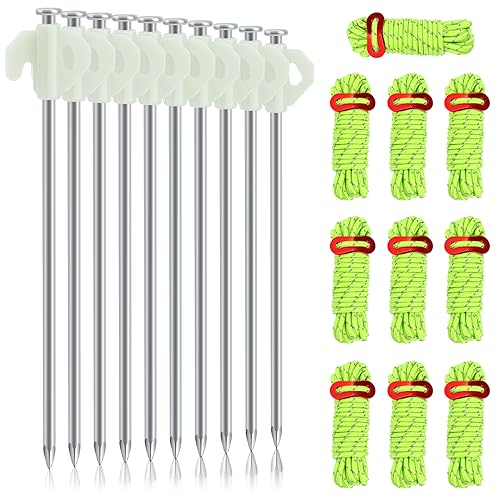 Kit da Campeggio Notturno: 20 Pezzi per Sicurezza e Comfort! 10 Picchetti in Acciaio Luminosi + 10 Corde Riflettenti 4mm di Qualità