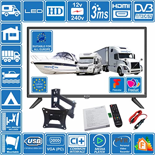Camper Caravan Barca 24 pollici 12V 220V LED FHD Digitale TV DVB-T2/C/S2 Terrestre/Cavo/Satellite TV USB PVR & Lettore multimediale, VGA & HDMI Monitor per PC di Unispectra® (TV+Supporto a muro)