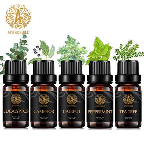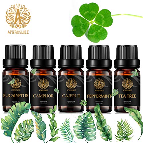 【 Pacchetto Include 】- Aphrosmile camphoraceous Oli Essenziali Kit dispone di 5 tipi di olio essenziale, comprendono - Cajeput, eucalipto, menta piperita, Tea Tree, Canfora Olio Essenziale.