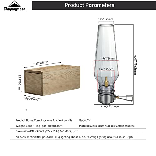 Campingmoon Coreless Gassificazione Tenda A Lume Di Candela Lampada A Gas Atmosfera Lanterna A Gas Da Campeggio Con Custodia Per Lanterna In Legno T-1