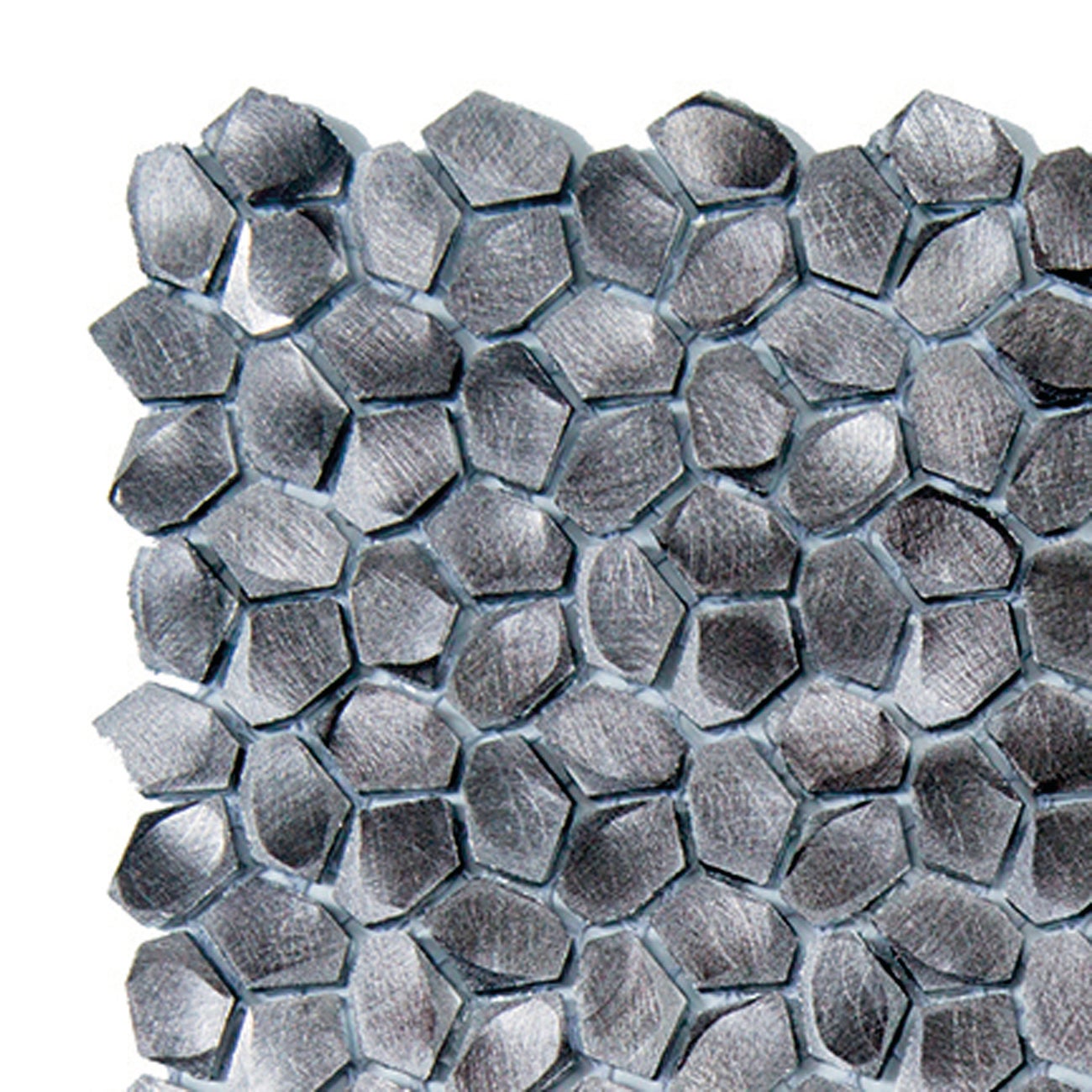 Campione in alluminio e vetro. Ideale per posa a parete in ambienti interni alla casa, ma ottimo anche per creare listelli e/o inserti decorativi perché facile da tagliare. Si adatta a tutte le superfici sia dritte che ondulate. Mosaico ideale per la decorazione da interno, con effetto tenuamente metallizzato che crea un mutevole e gradevole gioco di luce e colori.. Particolarmente indicato per essere posato come rivestimento da interno, anche pareti doccia in abbinato a piastrelle, usando compensatori di spessore