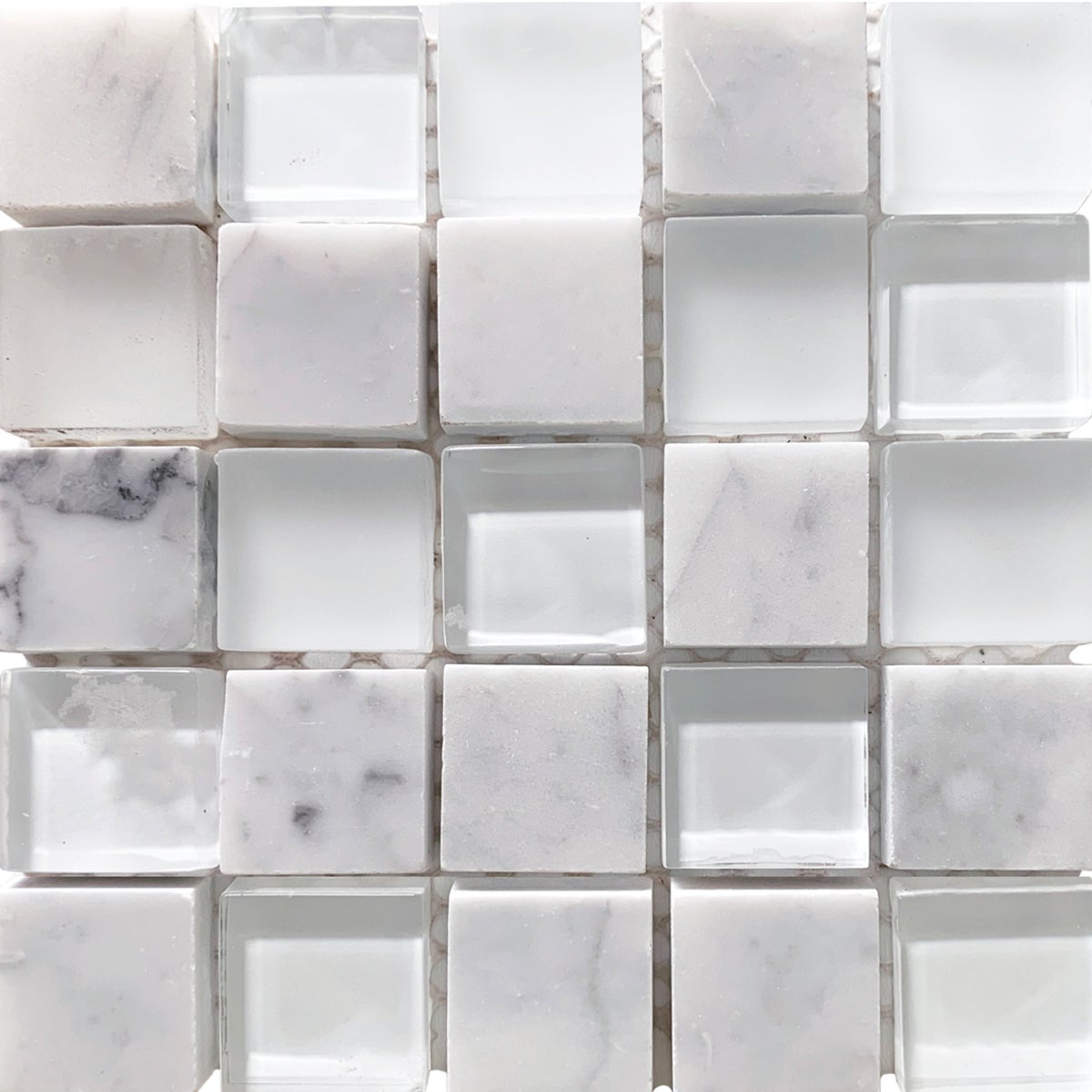 Campione in marmo e vetro. Ideale per posa a parete in ambienti interni alla casa, ma ottimo anche per creare listelli e/o inserti decorativi perché facile da tagliare. Si adatta a tutte le superfici sia dritte che ondulate. La pietra e il marmo naturale sono materiali nobili e antichi, viengono sempre più impiegati nell'arredo del bagno, soprattutto nella sua moderna versione ricostruita.. Lo spessore 8 mm è particolarmente indicato per essere posato in abbinamento con la maggior parte delle piastrelle