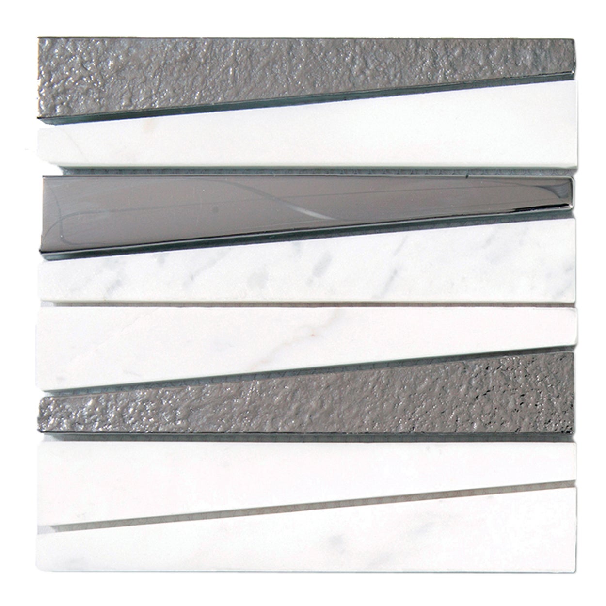 Campione in pietra e vetro. Ideale per posa a parete in ambienti interni alla casa, ma ottimo anche per creare listelli e/o inserti decorativi perché facile da tagliare. Si adatta a tutte le superfici sia dritte che ondulate. Mosaico ideale per la decorazione da interno, con effetto tenuamente metallizzato che crea un mutevole e gradevole gioco di luce e colori.. Lo spessore 8 mm è particolarmente indicato per essere posato in abbinamento con la maggior parte delle piastrelle