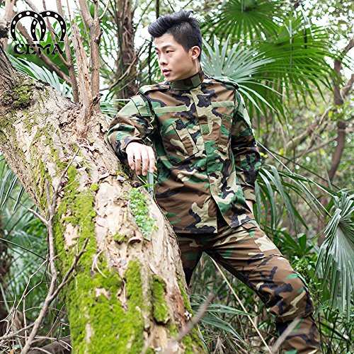 NOGA Camuffamento Tuta da Combattimento BDU Uniforme Militare Uniforme BDU Caccia Suit Wargame Paintball Coat + Pants (Woodland Camuffare, L)