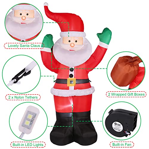 CAMULAND Decorazione Babbo Natale, 1.8M Babbo Natale Gonfiabile Decorazione da Esterno con Luce LED, Decorazione da Giardino Gonfiabile per Natale per Interni ed Esterni