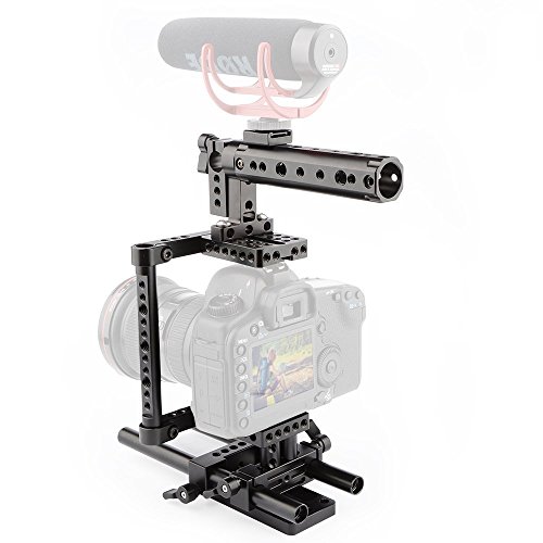 La gabbia fotocamera è interamente fatto di rigido in alluminio anodizzato per una maggiore durata. Viene fornito con 2pcs 20 cm Lunghezza luci LED alluminio Aste per il montaggio follow focus, matte box, e altri accessori, proteggendo telecamere o DVR. Progettato per funzionare con la maggior parte di modelli per Canon, Nikon, Sony, panasonnic. E 'ideale per professionisti o dilettanti cameraman e regista.