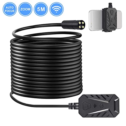 CAMWAY 1920P Endoscopio con Messa a Fuoco Automatica, Endoscopio Pixels 500w Impermeabile, Telecamera Endoscopio WiFi con 4 Luci a LED Regolabili per Android IOS-5M Telefono MP4 Immagini JPEG Video