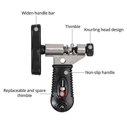 【Rompicatena della bicicletta】 - Questo rompicatena a gancio è progettato per rimuovere e installare i perni per sostituire le catene usurate. Il gancio di ferro incluso aiuta a tenere saldamente la catena. Manico di ricambio integrato per il ditale, può essere sostituito quando il ditale originale è danneggiato a causa di un funzionamento improprio.