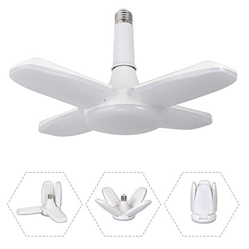CAMWAY Lampada da Garage a LED 60W,E27 6500K 6000LM, Luce Illuminoso Garage Deformabile Con 4 Pannelli Regolabili, Plafoniera a LED per Garage, Magazzino, Officina, Cantina, Palestra, Cucina