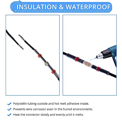 【Nessun contatto antiscivolo】 Le tubazioni si riducono di dimensioni e la saldatura si scioglie e scorre attraverso i fili spelati, assicurando una tenuta forte - il filo non scivolerà mai dal connettore.
