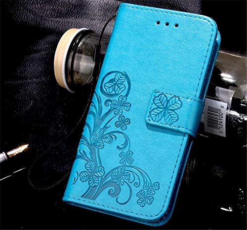 Canacsa Four Leaves Clover - Custodia di lusso per Apple iPhone SE 2020, iPhone 8 e iPhone 7, in pelle, colore: Blu