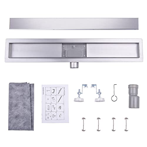 Canalina per doccia, 30 cm, piastrellabile, in acciaio inox, set completo di scarico per doccia, sifone extra piatto, con antiodore e filtro per capelli, scarico per doccia, 30 cm, 100 cm