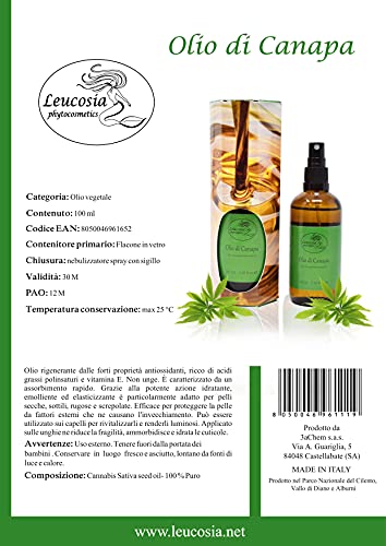 Olio di Canapa - 100% naturale - Ideale per pelli secche, sottili, rugose e screpolate. Ad azione nutriente, idratante ed emolliente dona morbidezza ed elasticità alla pelle.