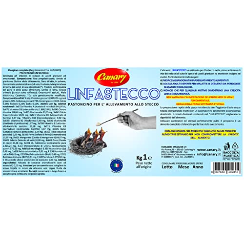 Canary LinfaStecco 1 Pack da 1kg Mangime in Farina - Pastone da imbecco per Uccelli nidiacei - Pastoncino per Allevamento allo stecco, Uccellini Pullus, Piccoli in Nido.